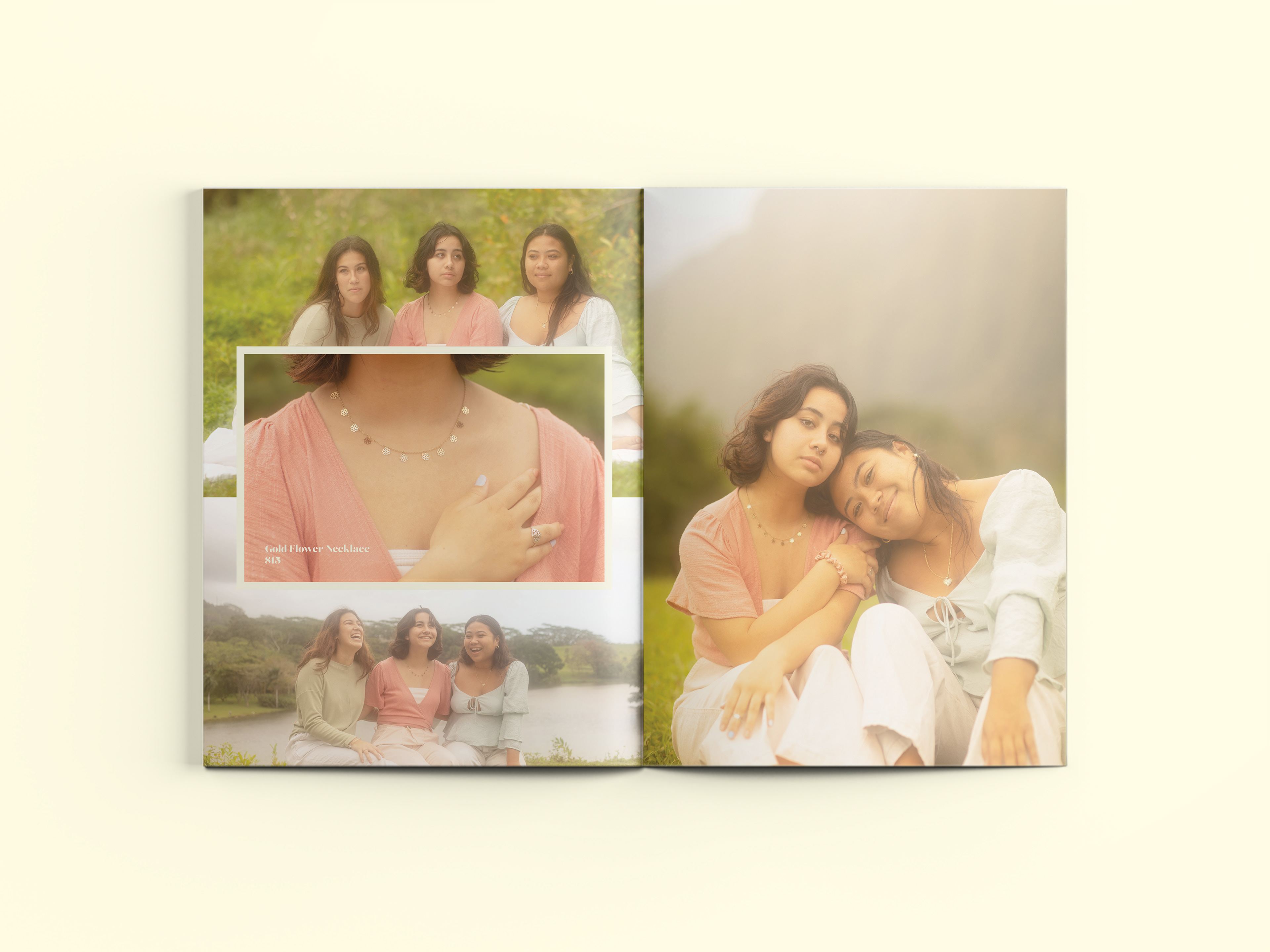 Mock Anthropologie lookbook/catalog project where I used a dreamy vintage aesthetic throughout the photo and spread edits. I collaborated with local photographer Maya Enos to help with the actual photography but all edits and designs were made by me