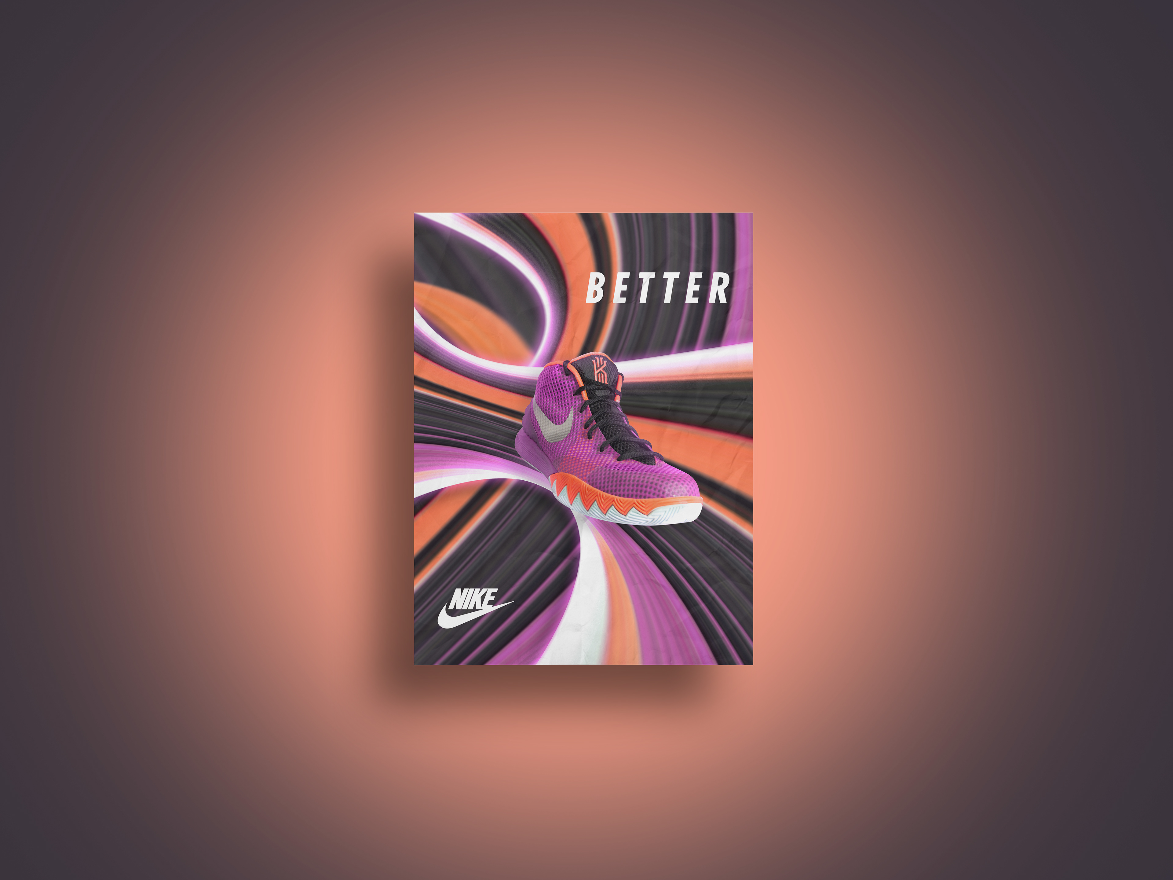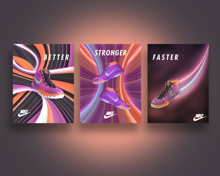 Tasked with finding an interesting way to promote nike shoes in a tri-poster campaign. I utilized the distinct color scheme of the Kyrie 1’s in order to come up with these pieces